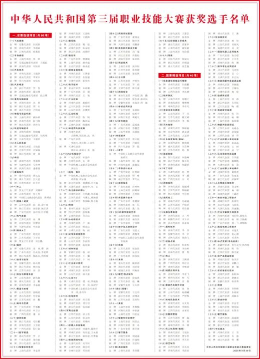 中华人民共和国第三届职业技能大赛获奖选手名单(官方完整版)
