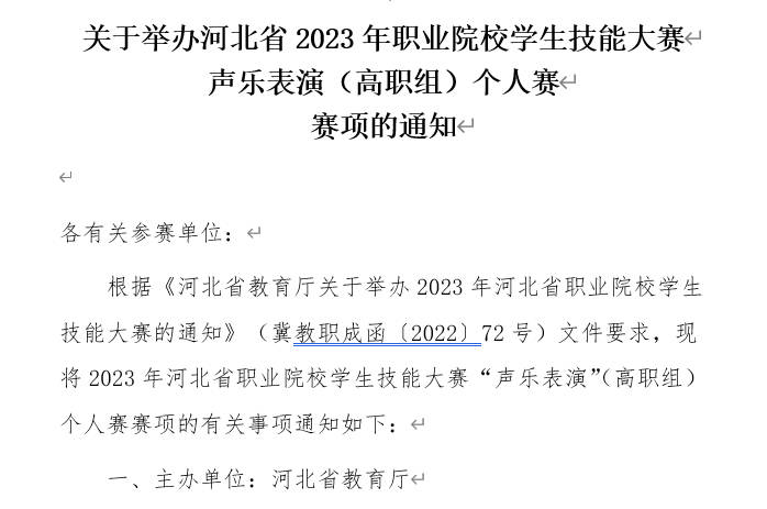 关于举办河北省2023年职业院校学生技能大赛 声乐表演(高职组)个人赛 赛项的通知